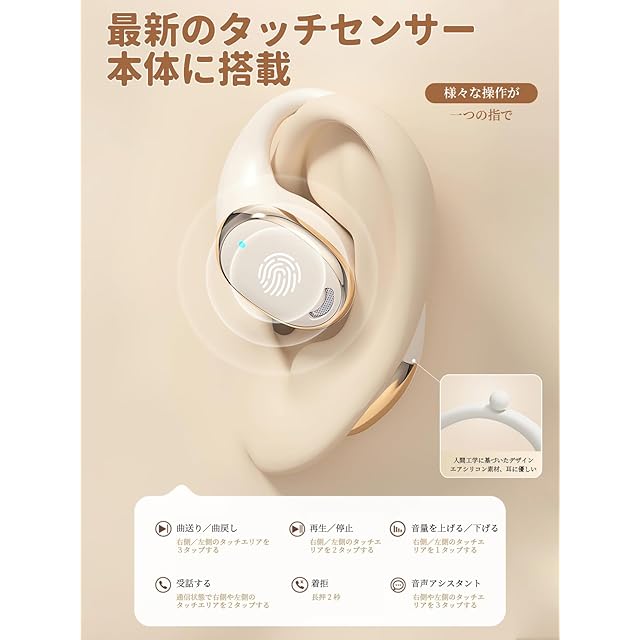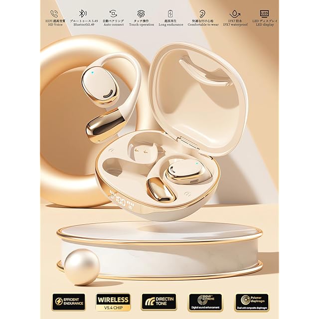 この骨伝導イヤホンは人間工学に基づいて設計されており、快適な装着感を提供します。Bluetooth 5.49技術を採用しており、シームレスな接続と卓越した音質をします。スマートタッチコントロールと自動ペアリング機能により、操作が簡単で便利です。複数のスタイリッシュなカラーからお選びいただけるため、音質とスタイルの完璧な融合を実現します<br> <p>✅ENC通話ノイズキャンセル<br> このイヤホンは、先進的なENC(環境ノイズキャンセル)技術を採用し、内蔵されたデュアルマイクが周囲の環境ノイズを効果的に低減し、クリアな通話を実現します。<br> ✅安定した接続<br> Bluetooth 5.49に対応しており、極限まで音を飛ばし、安定した接続で音楽を楽しむことができます。Bluetooth機能搭載の各種デバイスに対応したブルートゥースイヤホン, IOS&iPhone&androidのスマホ、パソコンとも使用できます。 ✅強力なサウンド<br> 3層構造の大型13mmドライバーユニットを搭載。コンパクトなモデルでありながら、迫力ある低音を実現します。<br> ✅最長60時間の連続再生<br> イヤホン本体はフル充電の状態で最長6時間再生可能です。また、付属の充電ケースを使用することで、最長60時間連続再生が可能です。さらに、10分間の充電で約1時間再生できます。※再生時間は音量、再生内容、使用環境により異なります<br> ✅極上の快適さ<br> 開放型ヘッドホン、科学と快適さを融合させた人間工学デザインにより、極上の装着感を提供します。大きな耳、小さな耳にかかわらず、イヤホンはしっかりとフィットし、長時間の使用でも快適さを保ちます。<br> ✅軽量でコンパクトなサイズ<br> イヤホンの重量は約7グラム。長時間装着しても疲れにくいです。ケースはコンパクトで小さく、ポケットやバッグに簡単に収まります。イヤホンは防水、防汗、防滴仕様で、ジョギング、ランニング、ヨガ、スポーツ、フィットネス、サイクリングなどに最適です。<br> ✅多彩なカラーバリエーション<br>イヤホンをファッションステートメントに!新しい2025年モデルのBluetoothイヤホンは、クラシックな黒、エレガントなアイボリーホワイトが追加されました。。控えめで落ち着いたスタイルを求める方も、独自の個性を追求する方も、豊富なカラーオプションで全てのニーズに応えます。 <p>製品仕様<br> 型号:M70<br> Bluetoothバージョン:V5.49+EDR<br> イヤホンバッテリー容量:100mAh<br> 充電ケースバッテリー容量:600mAh<br> 電源入力:5V<br> 製品重量:約130g<br> 使用時間:6時間<br> 動作電圧:3.3V-4.2V<br> 充電時間:1 時間<br> スピーカインピーダンス:16Ω±15%<br> 周波数範囲:20Hz~20KHz<br> 伝送距離:10メートル以上<br> <p>製品パッケージ内容<br> 1* イヤホン 耳掛け<br> 1* 充電ケース<br> 1* Type-C充電ケーブル<br> 1* 日本語・英語取扱説明書<br> 1* 高級パッケージボックス<br>