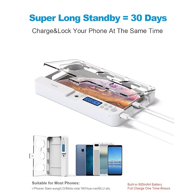 「超長スタンバイ時間」内部サイズ183*87*18mmで、900mAh充電式iPhoneロックボックスは、満電で超長スタンバイ30日です。スマホ依存という病を防ぐことができ、良い習慣を構築する。ご注意:ロックボックスをご購入前に、自分のスマホサイズをご確認お勧めます。サイズは182*86*17mm以内のスマホをこのロックボックスに入れることができます。