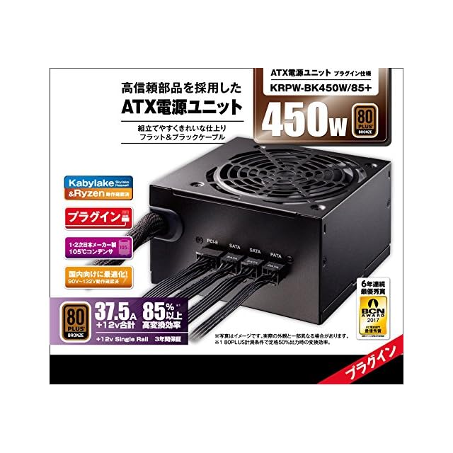 商品名:玄人志向 電源ユニット 450W ATX 電源 80 PLUS ブロンズ PC電源 プラグイン KRPW-BK450W/85+