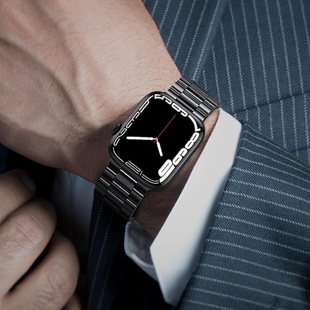 [FALSAD] 新型 Apple Watchバンド ステンレス 46mm/42mm/44mm/40mm/45mm/41mm保護ケース付き 対応 Se/Se2/Series10/9/8/7/6/5/4 アップルウォッチ 交換バンド,iwatch メタル 金属 長さ調整器具付き メンズ レディース兼用ベルト ビジネス 通勤(44mm ブラック) | TREND DESIGN 家電専門店