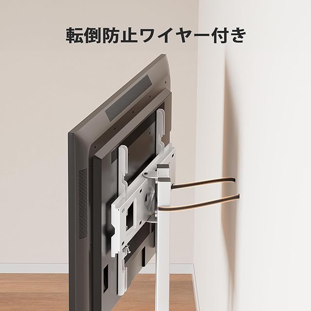 【他社より安定性が抜群】Perlegear 壁寄せテレビスタンドは、台座が縦60cm、横40cm、厚さ2.5cmと広くとられていて、本体重量も13kgあるので、最大70インチまでの大型テレビを安心して設置できます。フレームには頑丈なスチール製と高品質のMDF木材を採用しているため、耐荷重45kgと安定感も抜群です。テレビスタンドを壁と固定できる転倒防止ワイヤー付きなので、子供のいたずら防止や地震対策にも役立ちます。プレゼン・イベント会場・病院の待合室など幅広いシーンにおすすめです。
