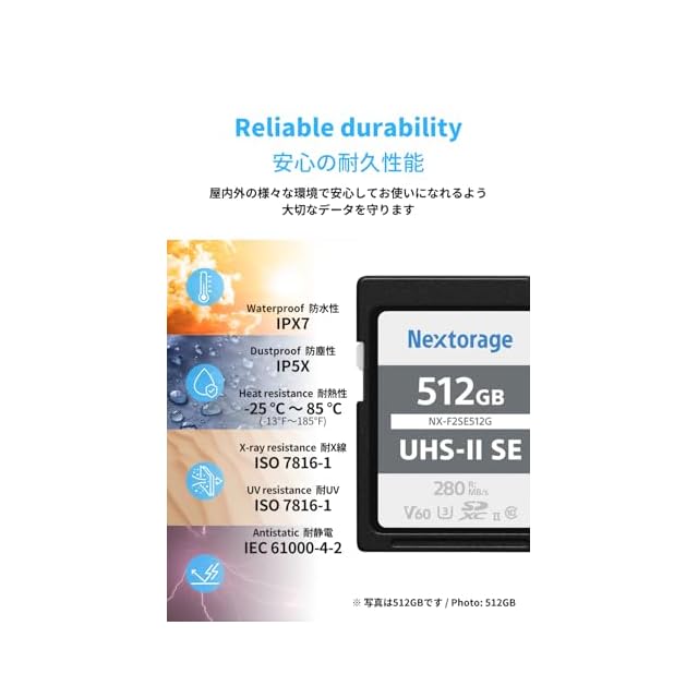 商品名:Nextorage 日本メーカー UHS-II V60 512GB SDXC SDカード 最大読出し速度280MB/s 最大書込み速度150MB/s 4K録画 NX-F2SE512G ネクストレージ メモリカード