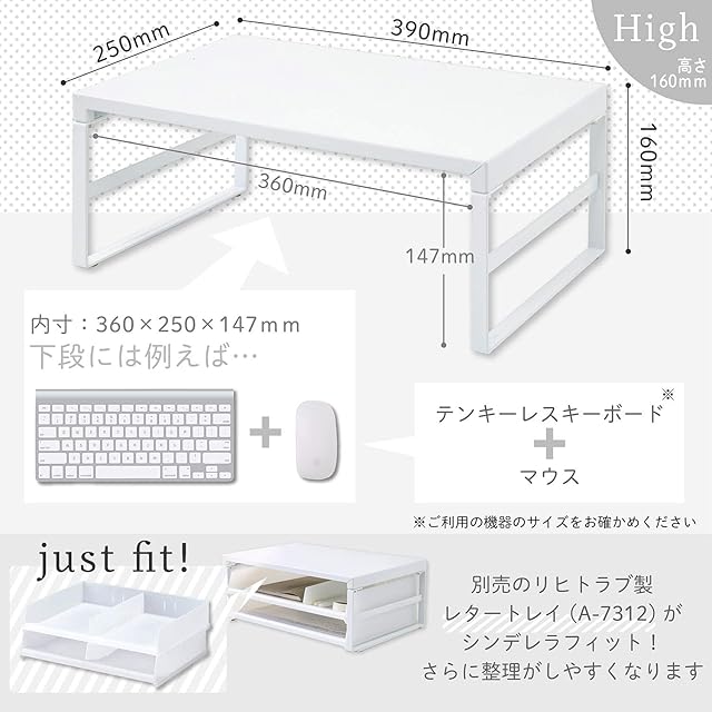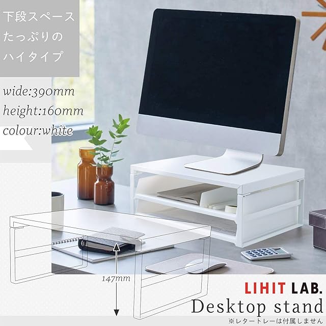 商品名:リヒトラブ パソコン台 モニター台 机上台 白 幅39×奥行25×高さ16cm ハイ 耐荷重15kg A7331-0