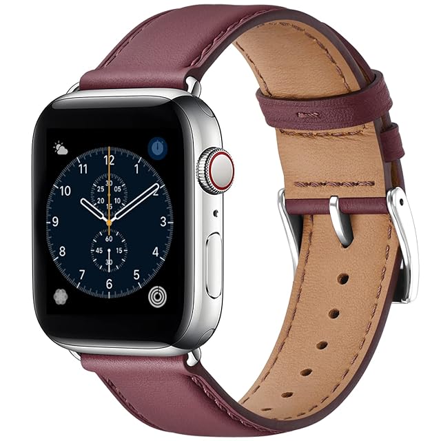 コンパチブル アップルウォッチ バンド 革 46mm 42mm 44mm 45mm 49mm 40mm 41mm 38mm コンパチブル Apple Watch バンド 本革 レザー ビジネス 男女兼用 コンパチブル iWatch Ultra/Ultra2/SE/SE2/Series10/9/8/7/6/5/4/3/2/1に対応(ワインレッド・シルバー)