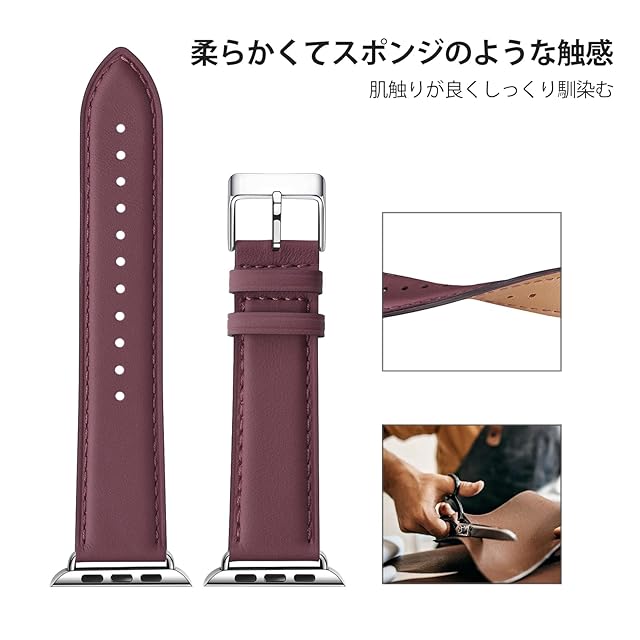 商品名:コンパチブル アップルウォッチ バンド 革 46mm 42mm 44mm 45mm 49mm 40mm 41mm 38mm コンパチブル Apple Watch バンド 本革 レザー ビジネス 男女兼用 コンパチブル iWatch Ultra/Ultra2/SE/SE2/Series10/9/8/7/6/5/4/3/2/1に対応(ワインレッド・シルバー)