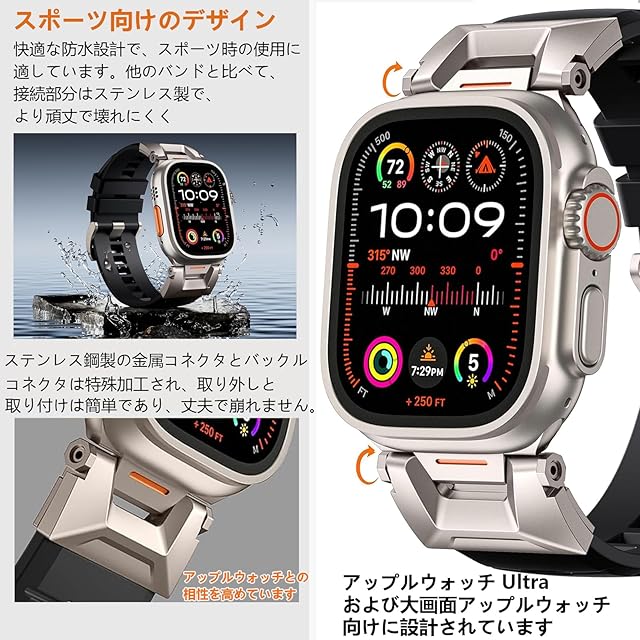 商品名:新登場 アップルウォッチ バンド ultra 49mm/46mm/45mm/44mm/42mm Series 10/9/8/7/SE2/SE/6/5/4/3/2/1 Apple Watch バンド スポーツ 防水 TPU 柔らかい アップルウォッチ ベルト メンズ スポーツ