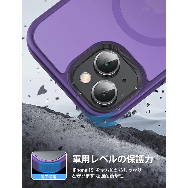 iPhone 15 用 ケース MagSafe対応 ワイヤレス充電 磁気ケース 耐衝撃性 米軍MIL規格の保護 傷に強い背面 6.1インチ