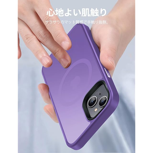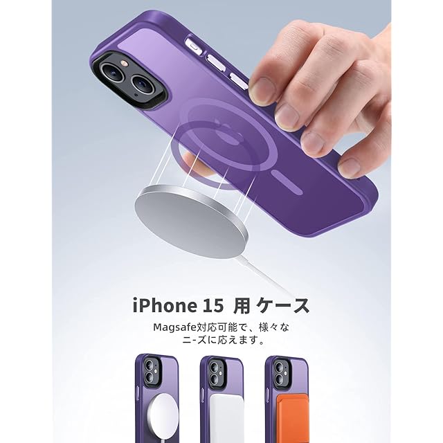 商品名:【米軍規格・MagSafe対応】Gtsoho iPhone 15 用 ケース 半透明 マグネット搭載 ワイヤレス充電 耐衝撃 耐久性 全面保護 黄ばみなし ストラップホール付き イフォン15用 カバー マグセーフ対応 ダークパープル...