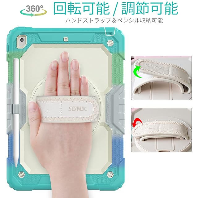SEYMAC stock iPad 第9世代 8世代 7世代 ケース 耐衝撃 頑丈 落下保護 360°回転スタンド 調節可能 頑丈 丈夫 ハンドストラップ ペン収納 ショルダーストラップ ハード 全面 フィルム 衝撃保護 現場 工事現場用 子供 キッズ 蓋なし 横置き 縦置き iPad 9世代/8世代/7世代 10.2’’ 2021 2020 2019 ケース 10.2インチ A2602 A2603 A2604 A2605 A2270 A2428 A2429 A2430 A2197 A2198 A2200 ipadだい9世代 カバー ipad だい9世代ケース