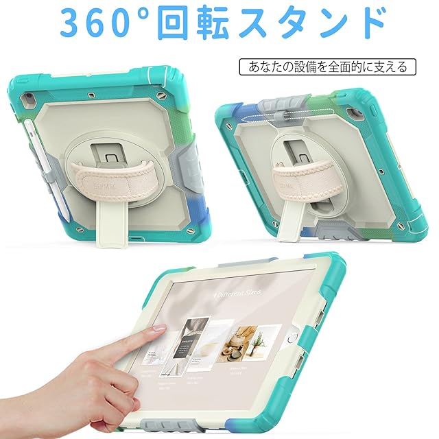★【ハンドストラップ&ショルダーストラップ】:どの場所、状況でも使いやすい、手を通すタイプのハンドストラップ&首や肩に掛けるタイプのショルダーストラップは遊び、旅行中などにハンズフリーになります。大事なiPad第9世代/第8世代/第7世代を落とさずに操作に集中できます。子供にも気楽に楽しめます。