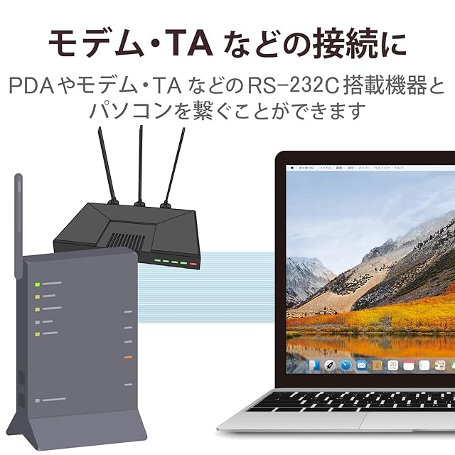 パソコンのUSB-AポートをRS-232C(D-Sub9pin)プラグに変換し、PDAやモデム・TAなどのRS-232C周辺機器とデータ転送ができる変換ケーブルです。