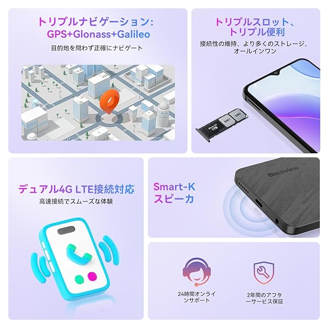 【2年間長期付き】Blackview Wave8Cは、コストパフォーマンスに優れたお手頃価格のスマートフォン。操作が簡単で、高齢者や学生にも最適です。プレゼントとしても喜ばれるデザインと機能性を兼ね備えています。さらに、2年間の長期付きで、万が一のトラブルも安心。12時間以内に迅速なサポートをご提供します。