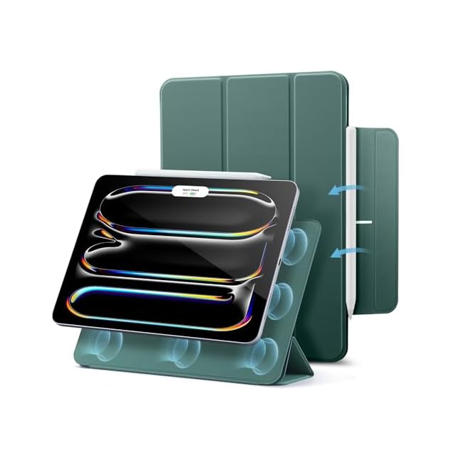 ESR iPad Pro 11インチ ケース M4 (2024、第5世代) 専用 強力マグネット吸着式 スリムな三つ折りスタンドケース Pencil Pro/USB-C完全対応 耐久性保護 Reboundシリーズ グリーン | TREND DESIGN 家電専門店