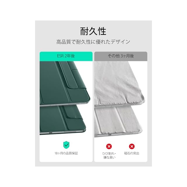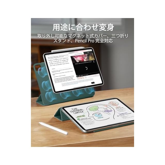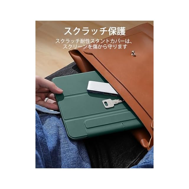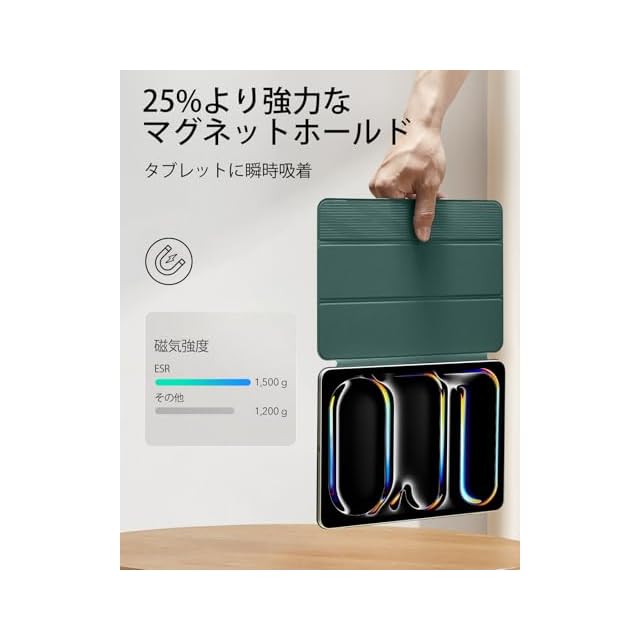 商品名:ESR iPad Pro 11インチ ケース M4 (2024、第5世代) 専用 強力マグネット吸着式 スリムな三つ折りスタンドケース Pencil Pro/USB-C完全対応 耐久性保護 Reboundシリーズ グリーン