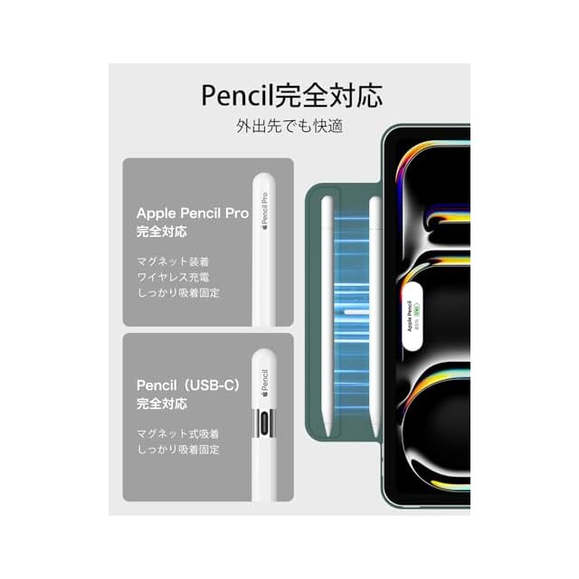 【Pencil Pro&Pencil (USB-C)対応】: Pencil Proへ完全対応かつ、磁気充電用の側面の溝と、Pencilをしっかりと固定するマグネットクラスプを備えています。