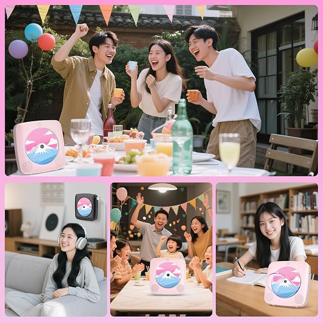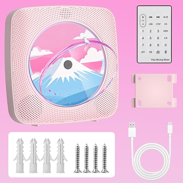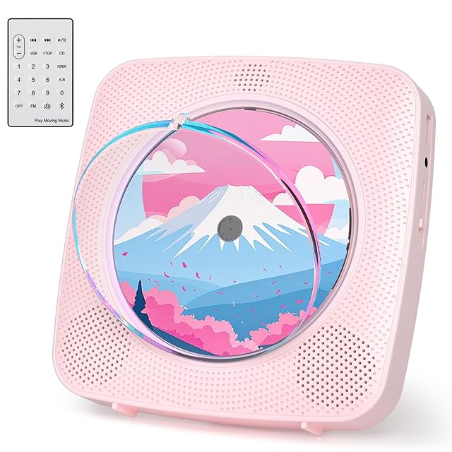 Gueray CDプレーヤー 卓上&壁掛け式 Bluetooth受信/送信 HiFiスピーカー内蔵 cdプレイヤー 多機能 FM/USBなどに対応 操作簡単 リピート/A-Bリピート再生 mp3対応 イヤホン対応 防塵カバー付き CDラジカセ リモコン 音楽再生/語学学習/胎児教育 日本語説明書付き ピンク