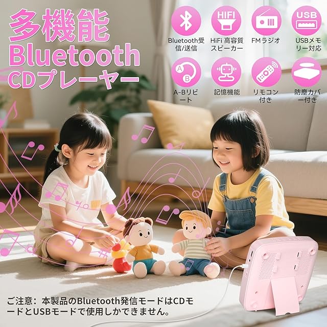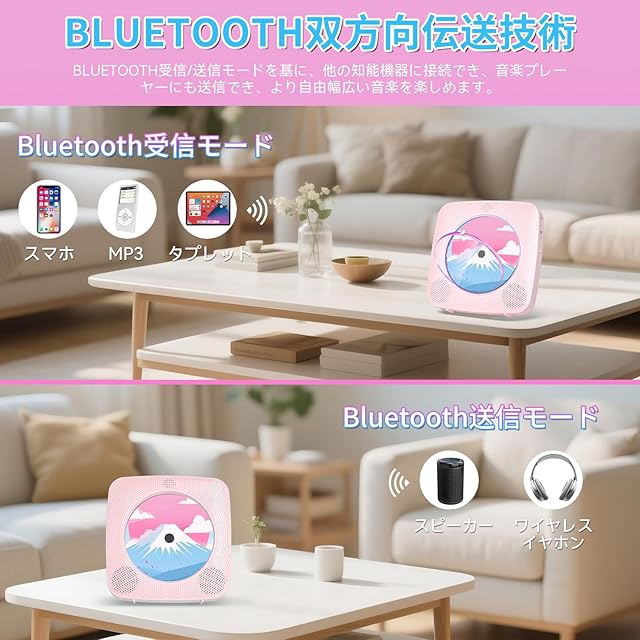 商品名:Gueray CDプレーヤー 卓上&壁掛け式 Bluetooth受信/送信 HiFiスピーカー内蔵 cdプレイヤー 多機能 FM/USBなどに対応 操作簡単 リピート/A-Bリピート再生 mp3対応 イヤホン対応 防塵カバー付き CDラジカセ リモコン 音楽再生/語学学習/胎児教育 日本語説明書付き ピンク