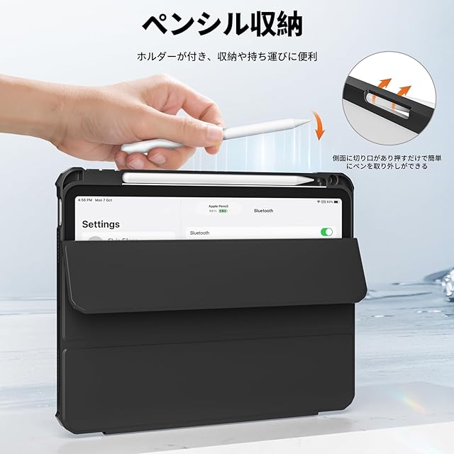 ペンシルホルダー: Apple Pencilホルダー内蔵で、ペンシルの出し入れが便利。外出時にペンを紛失したり損傷したりするのを防ぎます。(注: Apple Pencilは付属していません)