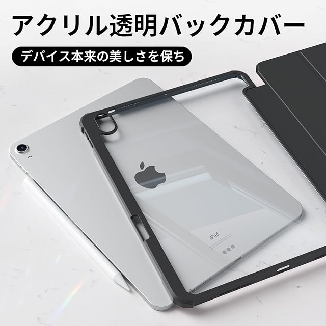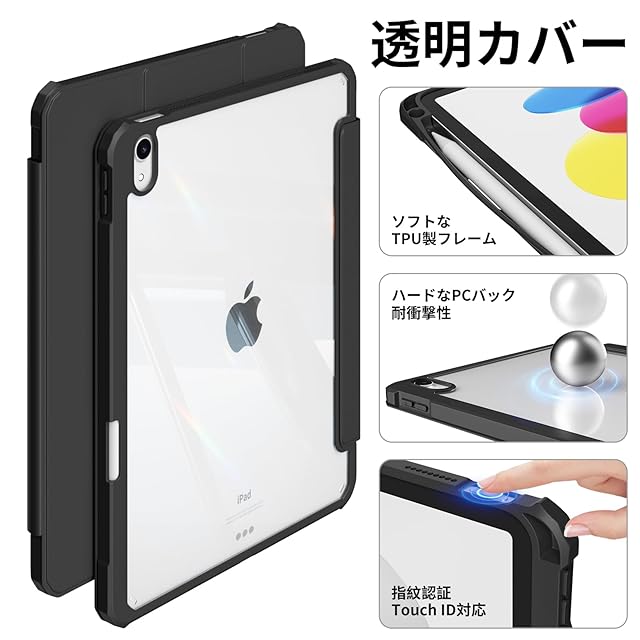 zoyu iPad 11世代 ケース A16 2025 /iPad 10世代 専用 ケース 2022 10.9 インチ ipad 第11/10世代 カバー アクリル クリア 透明バックカバー ペンシル収納 Pencil2収納可能 Touch ID 対応 自動ウェイク/スリープ 三つ折りスタンド薄型 軽量 耐衝撃 ソフトTPU A2696 A2757 A2777 ブラック | TREND DESIGN 家電専門店