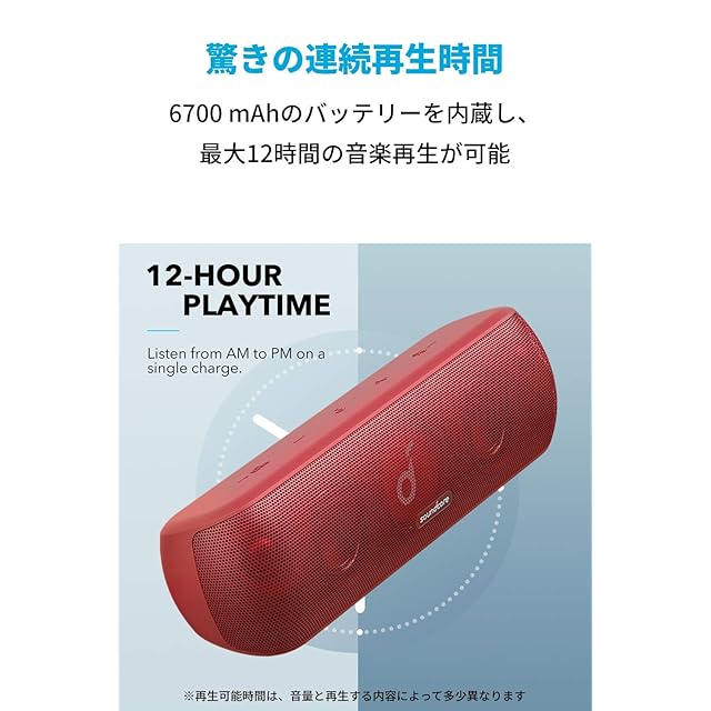 商品名:Anker Soundcore Motion+ Bluetooth スピーカー 防水 重低音 apt-X 30W出力 12時間連続再生 IPX7 パッシブラジエーター iPhone & Android 対応 レッド