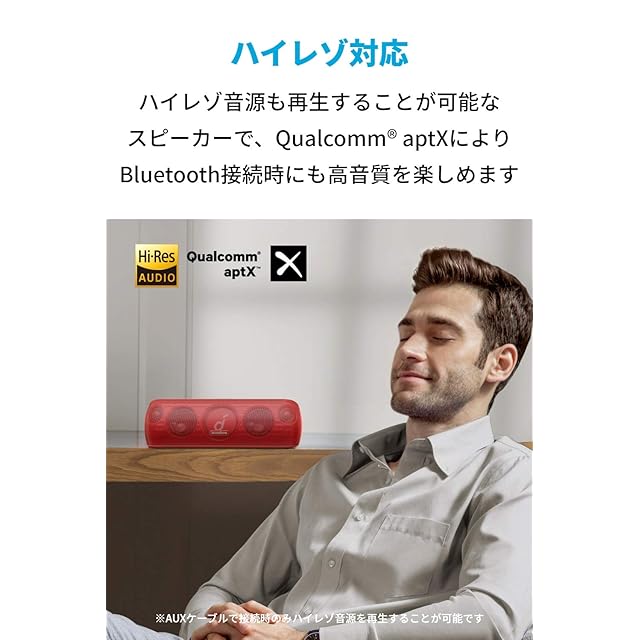 Hi-Fi サウンド:超低域の50Hzから超高域の40kHzまで幅広い周波数帯に対応。AUXケーブルで接続するとハイレゾ音源を再生することができ、またBluetooth接続時もQualcomm aptXにより遅延の少ない高品質なサウンドをお楽しみいただけます。