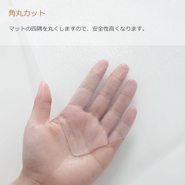 冷蔵庫マット 傷防止マット 角丸加工:すべての角をさらに丸く処理された安全設計、めくれ上がることなく、ケガしにくいのでお子様やペットがいるご家庭でも安心して使える. 床、床タイル、畳などの床を選ばず使用できる.