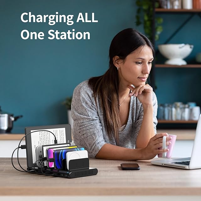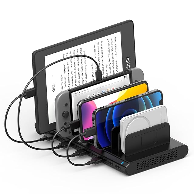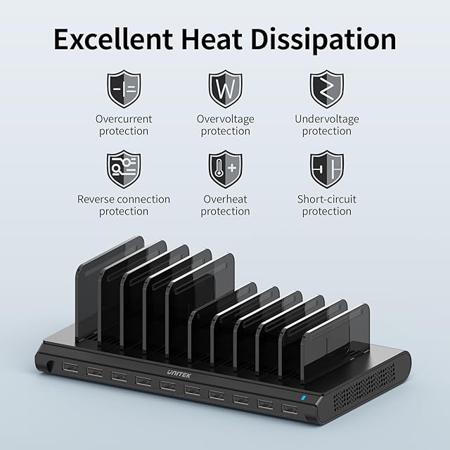 Unitek 2024 USB充電ステーション 10ポート 卓上充電スタンド 最大12A 60W PSE認証済 10台同時収納 1.5A/2.4A 複数台対応 Android/iPhone/iPad/kindle/タブレット/PSP 仕切り板 間隔調整可能 黒