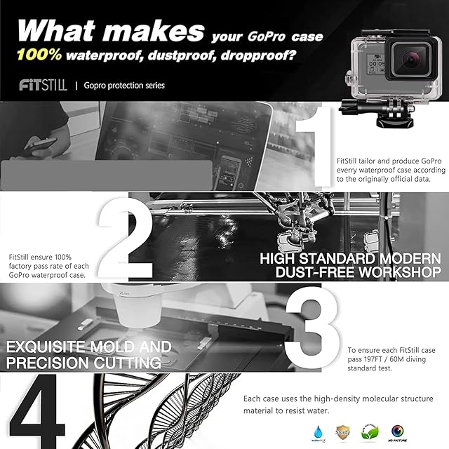 商品名:FitStill Go Pro HERO 7/6/5 Black (2018)ブラック対応 | ダブルロック| 45m水深ダイビング| 防水防塵保護ハウジング| Go Pro Hero7 Hero6 Hero5 アクションカメラ対応 水中撮影用