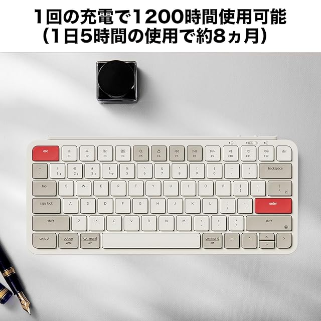 【1回の充電で1200時間使用可能】 最大1200時間のバッテリー寿命で、途切れることなく使用できます。また、凹型のコンケーブキーキャップは正確な入力をし、指に自然にフィットする快適なタイピングを実現します。