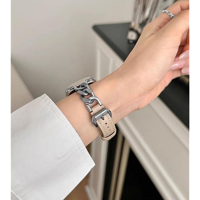 商品名:コンパチブル アップルウォッチ バンド本革 Apple Watch バンド ステンレス appleウォッチバンドチェーン 調整工具不要Apple Watch Series Ultra2/Ultra/SE2/SE/9/8/7/6/5/4/3/2/1に対応49mm 45mm 44mm 42mm 41mm 40mm 38mm