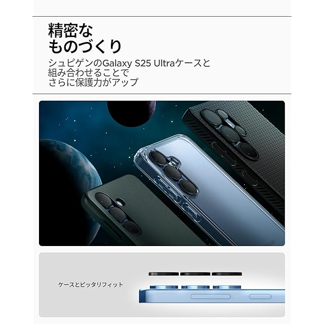 Spigen Galaxy S25 ULTRA カメラ保護フィルム 9H硬度強化ガラス 貼り付けキット付き ギャラクシーS25ウルトラ対応 レンズプロテクター 2枚入 (ブラック)