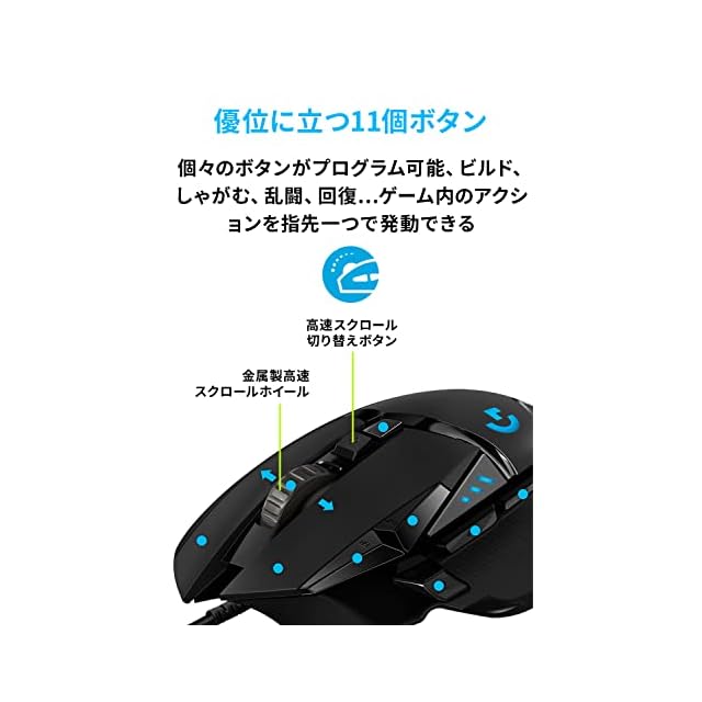 Logicool G ゲーミングマウス G502 有線 USB 接続 マウス HERO 25Kセンサー G502RGBhr LIGHTSYNC RGB 11個プログラムボタン FPS / MMO / RPG ブラック PC windows mac 国内正規品 【 ファイナルファンタジーXIV 推奨周辺機器 】 | TREND DESIGN 家電専門店