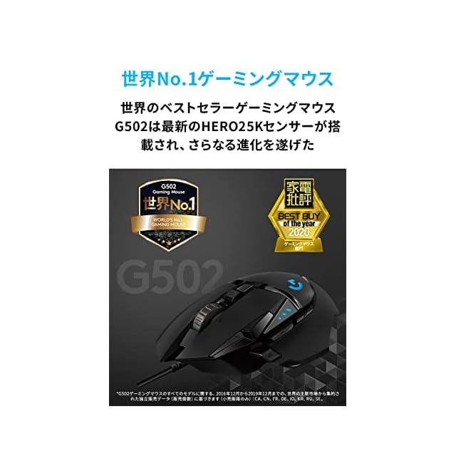 【Logicool G G502 HERO ゲーミングマウス】ゲーミングマウス販売台数世界No.1※のG502シリーズのHEROdsセンサーが搭載される有線版です