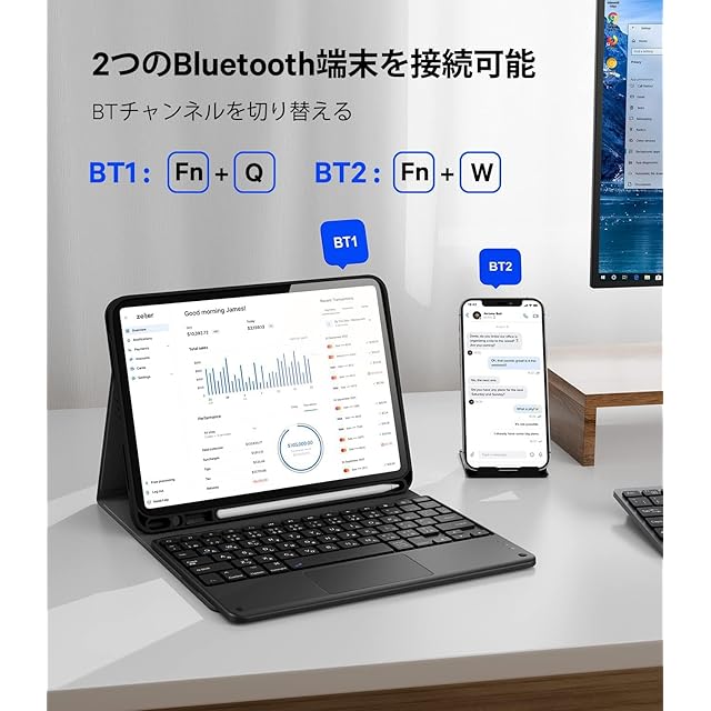 【JIS日本語配列キーボード】このBTキーボードはJIS規格準拠の標準日本語配列のキーボードで、日本語入力に特化した大きい、かな入力と英語入力も使えます。また12種類ショットカットキーを搭載して、快適なタイピングを実現します。ブロガー、作家、デザイナー、専門家、学生など誰にも最適なBTキーボードです!