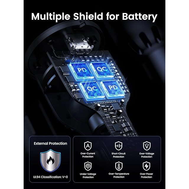 【3ポートで急速充電・複数の急速充電プロトコルをサポート】USB C×2+USB Aのポート構成で3つのモバイルデバイスを同時にフルスピードで充電!PD100W+30W及びSCP22.5W出力の組み合わせて3台のデバイスを同時急速充電でき、もっと高出力で対応られます。3ポート同時に使用する場合、出力配分によりパワーが落ちる恐れがあることをご注意ください。