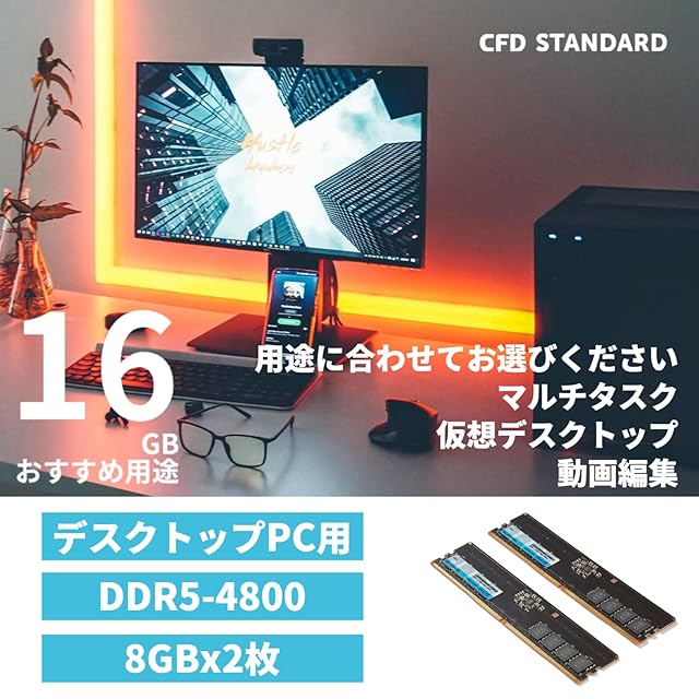 商品名:シー・エフ・デー販売 CFD販売 CFD Standard デスクトップ用 メモリ DDR5 4800 (PC5-38400) 8GB×2枚 288pin DIMM 相性 W5U4800CS-8G