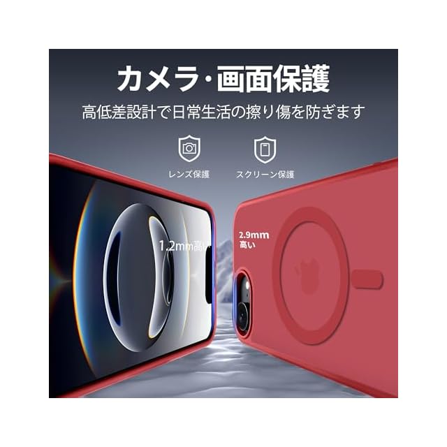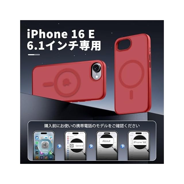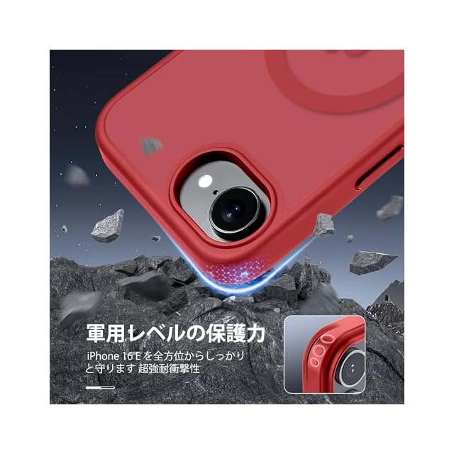 商品名:【米軍規格・MagSafe対応】Gtsoho iPhone 16e ケース 用 半透明 マグネット搭載 ワイヤレス充電 耐衝撃 耐久性 全面保護 黄ばみなし ストラップホール付き イフォン いphone16e ケース 用 カバー マグセーフ対応 レッド