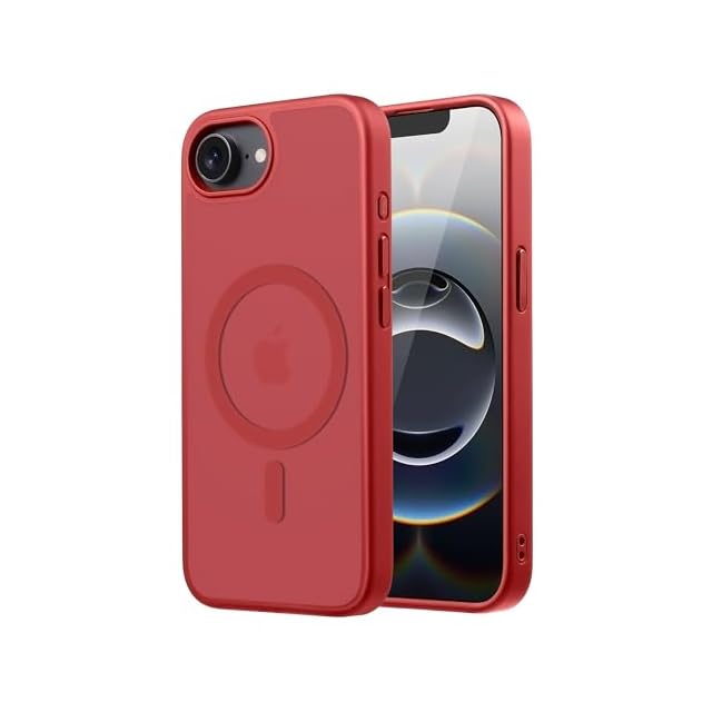 【米軍規格・MagSafe対応】Gtsoho iPhone 16e ケース 用 半透明 マグネット搭載 ワイヤレス充電 耐衝撃 耐久性 全面保護 黄ばみなし ストラップホール付き イフォン いphone16e ケース 用 カバー マグセーフ対応 レッド