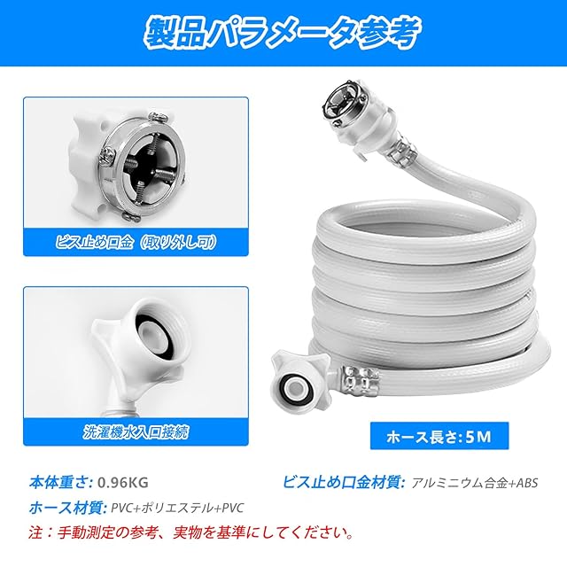 商品名:洗濯機給水ホース 5M 全自動洗濯機交換用給水ホース 元口付き 洗濯機給水延長ホース ワンタッチ接続 抜け防止 水漏れ防止 洗濯機用ホース交換部品