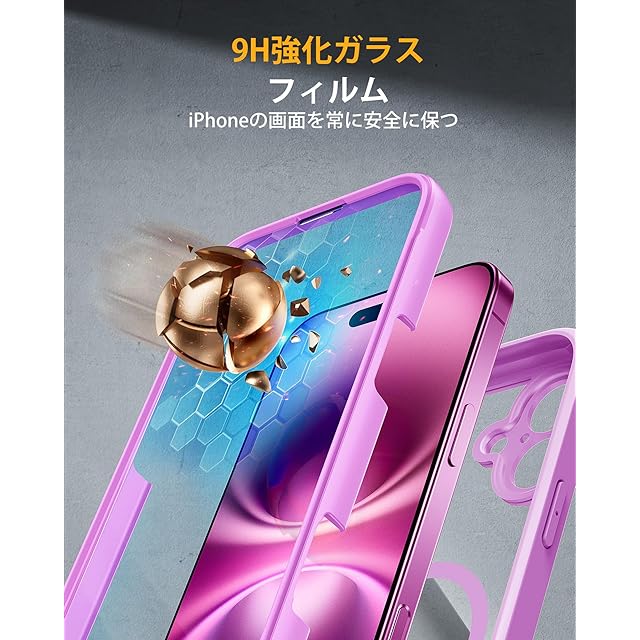 商品名:Miracase iPhone16 ケース MagSafe対応 スマホケース いPhone16 用 カバー 9H 強化ガラス 360°保護 全身バンパー保護ケース 6.1インチ フルカバー ワイヤレス充電対応 マグセーフ対応 マグネット搭載 ピンク