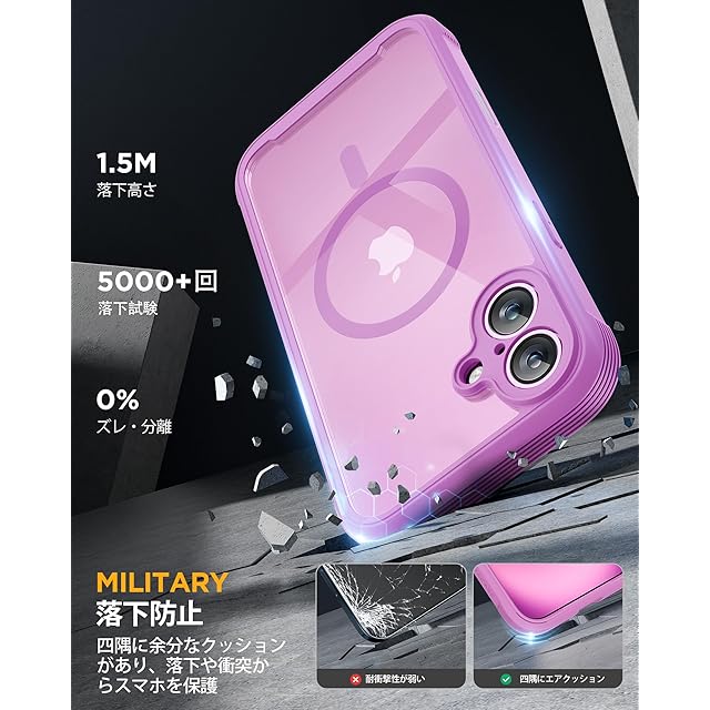 【強力な磁力吸着】2025アップグレード、iPhone16 用 Magsafe対応ケース。マグネットを搭載、超強力な吸着力でしっかり吸着します。利便性と実用性をアップさせ、ワイヤレス充電はもちろん、多様なマグネットアクセサリーとの素晴らしい組み合わせも実現できます。