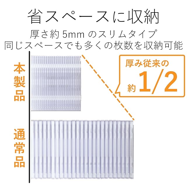 厚さ約5mmのスリムタイプ。コンパクトに収納できるスリムタイプのBlu-ray/DVD/CDケース。