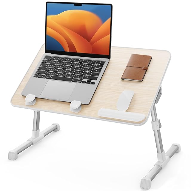 SAIJI ベッド デスク 折りたたみテーブル ベッドテーブル PCパソコンテーブル ローテーブル オフィスデスク ラップデスク 腕保護 高さ 角度調節可能 軽量 勉強 食事 一人暮らし40kg荷重 (チーク, Large) | TREND DESIGN 家電専門店