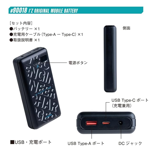 商品名:[ワークル] アイズフロンティア 2025年 春夏 ペルチェ用 バッテリー 20000mAh 新型ウェア用 作業着 作業服 空調作業服 90019