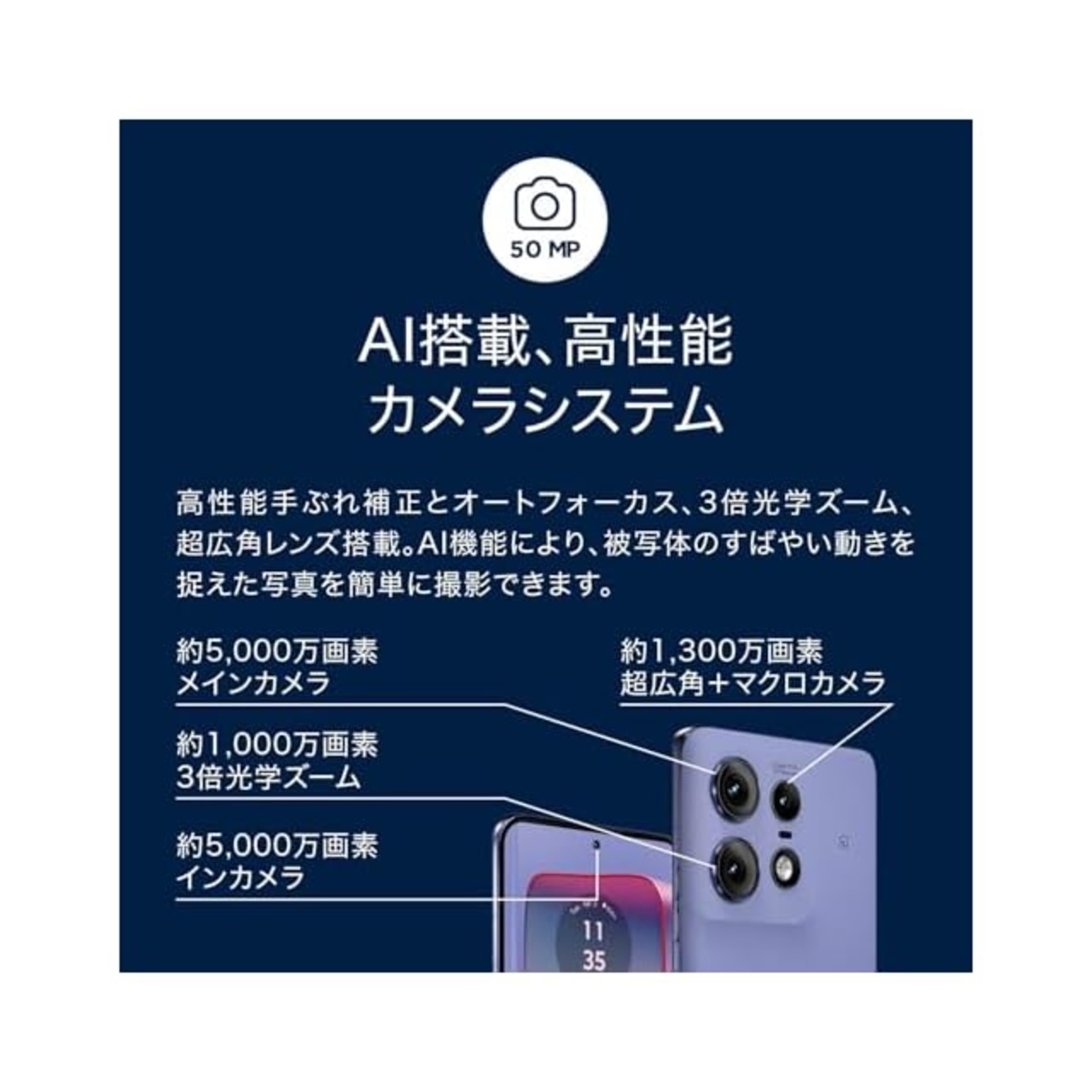 商品名:Motorola(モトローラ) motorola edge 50 pro|12GB/256GB|リュクスラベンダー|SIMフリースマホ 本体 端末|NFC/FeliCa 対応|正規代理店品|6.7インチ|有機EL|Super HD|IP68防水防塵|大容量バッテリー 4,500mAh|PB1K0001JP