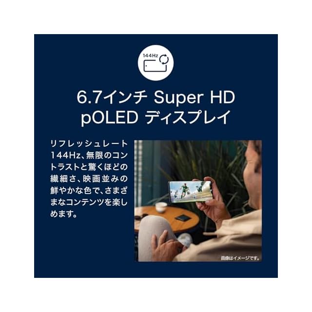 約6.7インチ 2,712x1,220 (Super HD)、 pOLED、20:9、リフレッシュレート 144Hz