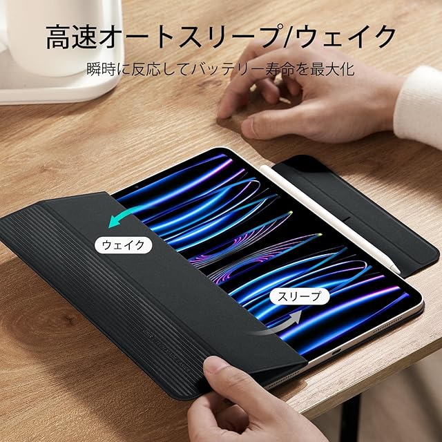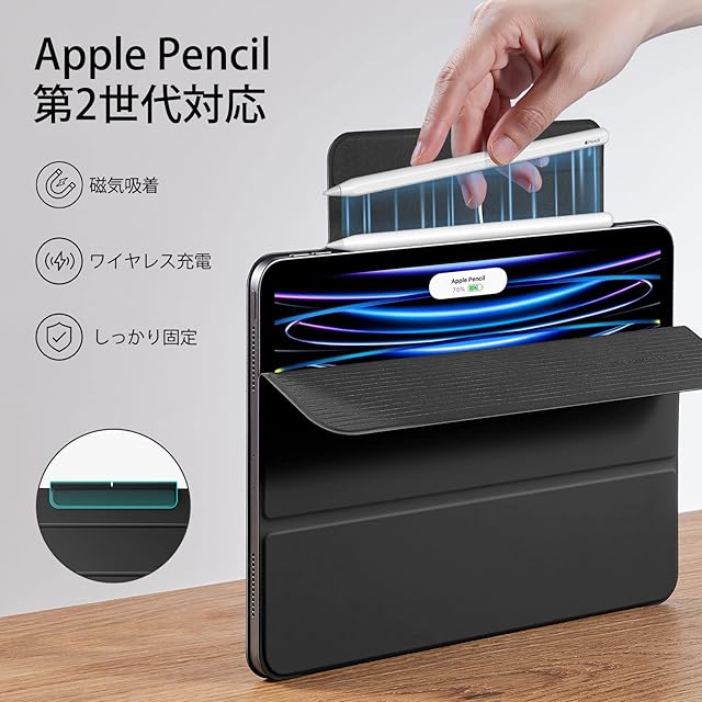 ESR iPad Pro 11インチ ケース 第4/3/2/1世代(2022/2021/2020/2018)専用 マグネット吸着式 Pencil 2対応 三つ折スタンド オートスリープ/ウェイク機能 Reboundシリーズ ブラック | TREND DESIGN 家電専門店