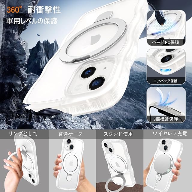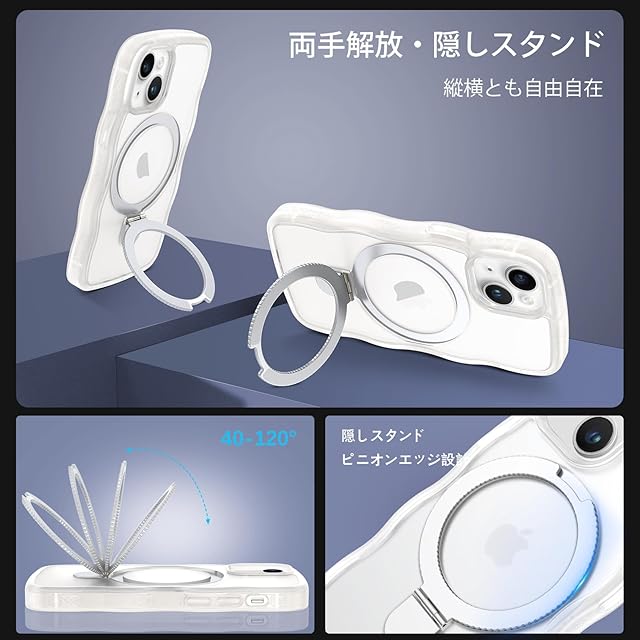 商品タイプ:ウェーブ半透明+スタンドMagsafe対応