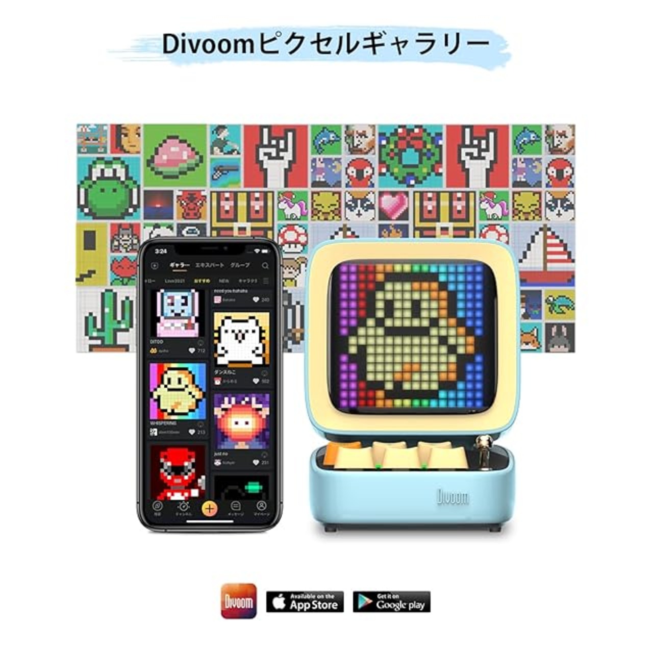 DIYピクセルアートキット - Divoom APPコミュニティにいる1000人以上のデザイナーに簡単にアクセスすることができます。ここからインスピレーションを得て、指先でご自身ならではの素晴らしいピクセルアートをデザインできます。Divoom APPには多数のピクセルアート作成ツールも用意されています。このスマートピクセルキットを使って、自由に想像力を膨らませましょう。