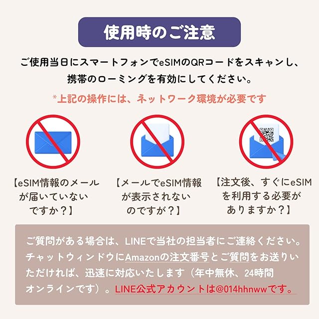 【即日発行可能】購入後は、説明書の方法に従ってeSIM情報を受け取ってください。台湾eSIMはメールでお届けします。当日中にすぐにご利用をご希望の場合は、カスタマーサポートセンターまでご連絡ください。